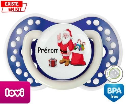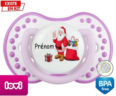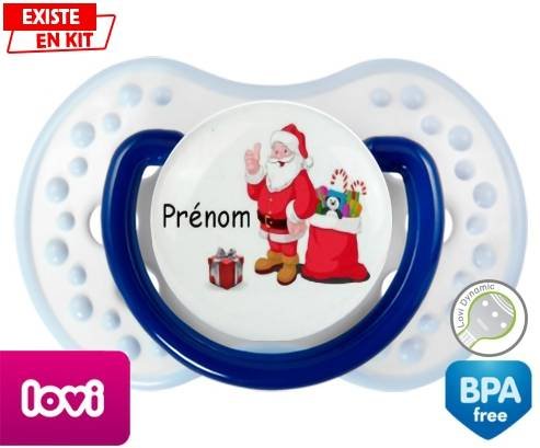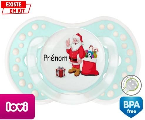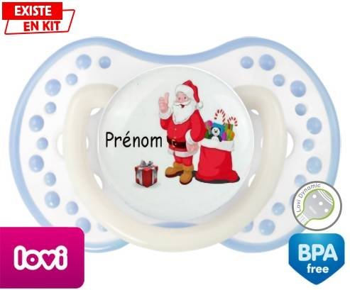 Tétine personnalisée avec le prénom pour bébé Père noël et cadeau + prénom : Tétine LOVI Dynamic en silicone de la marque Lovi Dynamic avec impression en couleur.