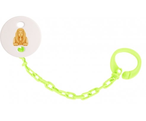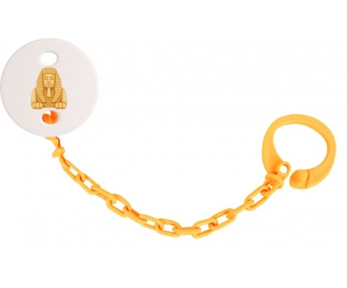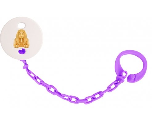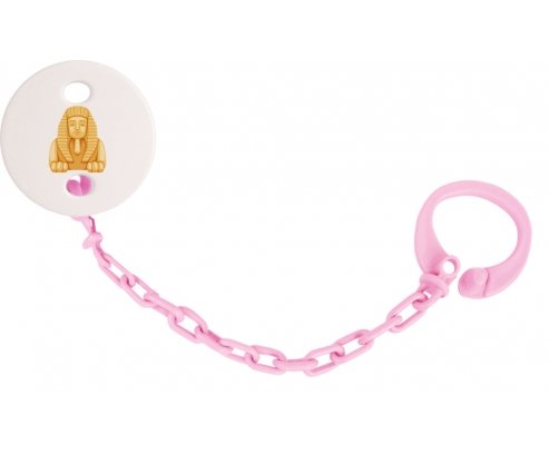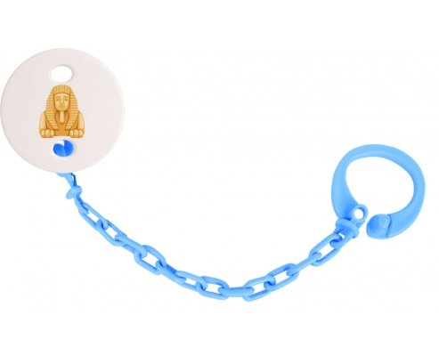 Attache-tetine personnalisé Statue de sphinx égyptien symbole de l'Égypte ancienne avec personnalisation design en couleur. Disponible en plusieurs coloris et plastique facile à laver. Pratique : permet une fixation facile de la sucette de bébé à son doudou et à ses vêtements en un seul clip. Hygiénique : empêche la sucette de tomber par terre et permet ainsi à bébé d'avoir une sucette propre toute la journée Visible : facile à repérer grâce aux motifs colorés.