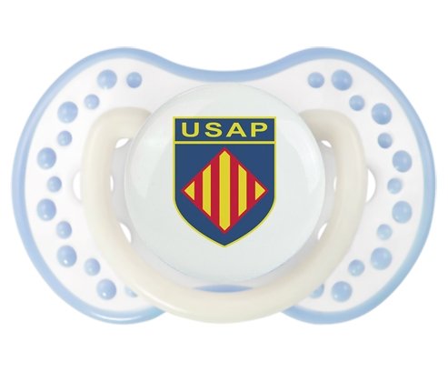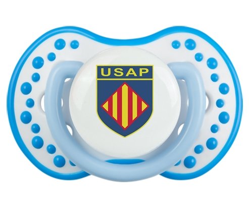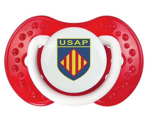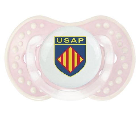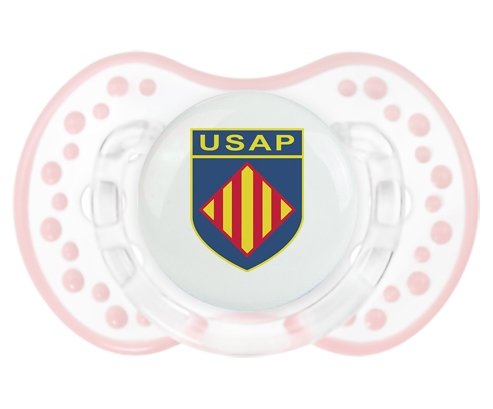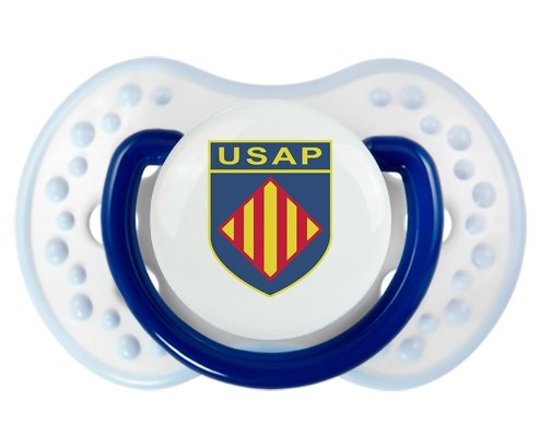 Sucette personnalisée pour bébé USA Perpignan à embout LOVI Dynamic en silicone de la marque Lovi Dynamic avec impression en en Couleurs de la Collection Pays / Équipes .La silicone se reconnaît par sa couleur transparente. C'est une matière souple, douce, sans goût ni odeur et offre à bébé une succion plus facile grâce à sa souplesse.