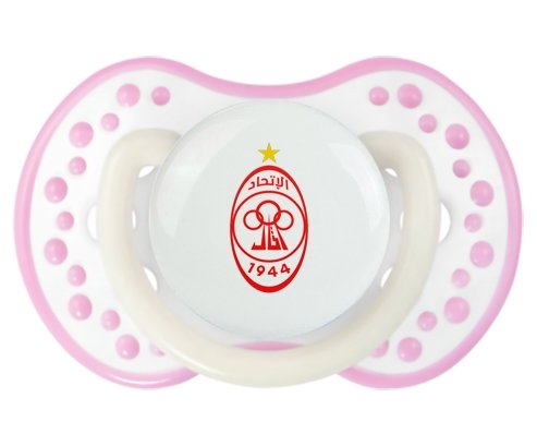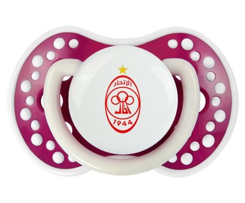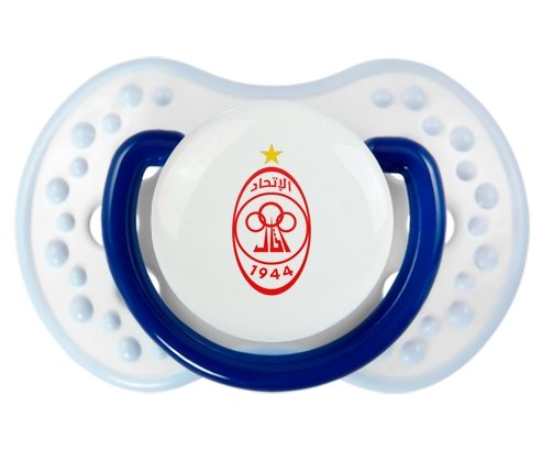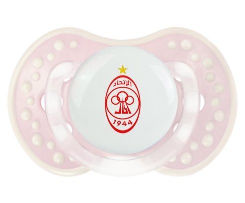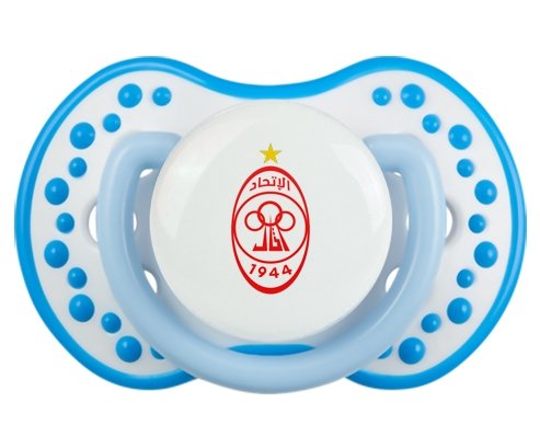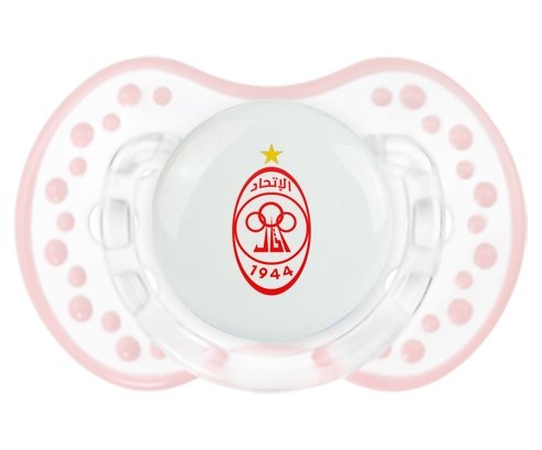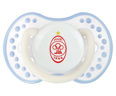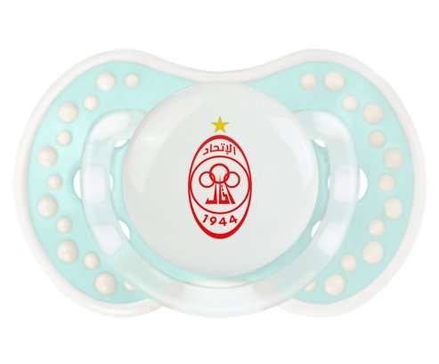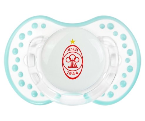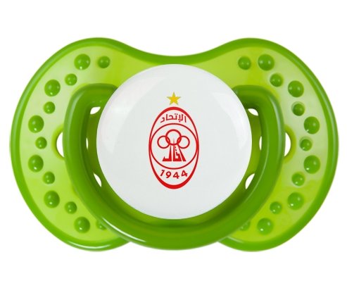 Sucette personnalisée pour bébé Al-Ittihad Tripoli à embout LOVI Dynamic en silicone de la marque Lovi Dynamic avec impression en en Couleurs de la Collection Pays / Équipes .La silicone se reconnaît par sa couleur transparente. C'est une matière souple, douce, sans goût ni odeur et offre à bébé une succion plus facile grâce à sa souplesse.