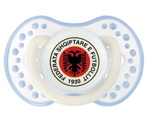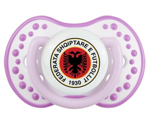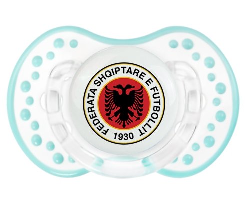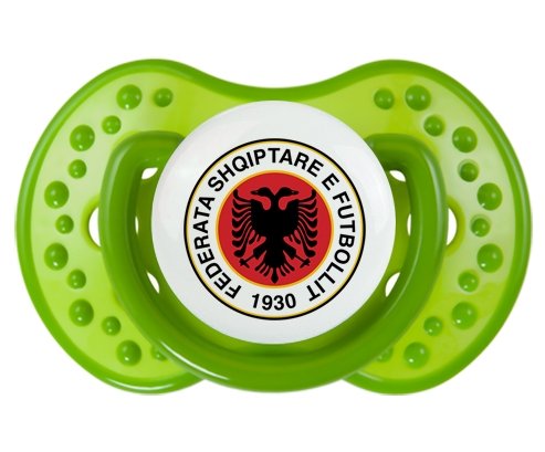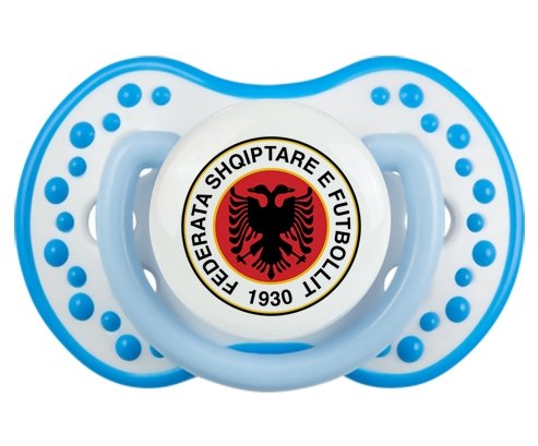 Sucette personnalisée Sans Prénom pour bébé Albania national football team en silicone de la marque Lovi Dynamic avec impression en couleur.