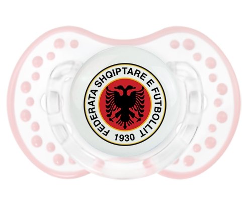 Sucette personnalisée pour bébé Albania national football team à embout LOVI Dynamic en silicone de la marque Lovi Dynamic avec impression en en Couleurs de la Collection Pays / Équipes .La silicone se reconnaît par sa couleur transparente. C'est une matière souple, douce, sans goût ni odeur et offre à bébé une succion plus facile grâce à sa souplesse.