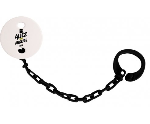 Attache-sucette personnalisé Angers SCO avec personnalisation design en couleur. Disponible en plusieurs coloris et plastique facile à laver. Pratique : permet une fixation facile de la sucette de bébé à son doudou et à ses vêtements en un seul clip. Hygiénique : empêche la sucette de tomber par terre et permet ainsi à bébé d'avoir une sucette propre toute la journée Visible : facile à repérer grâce aux motifs colorés.