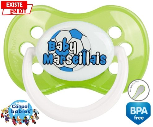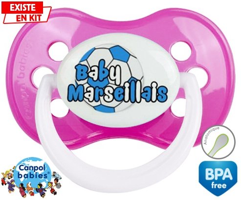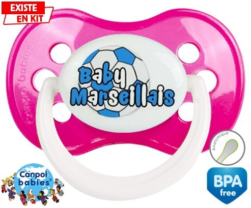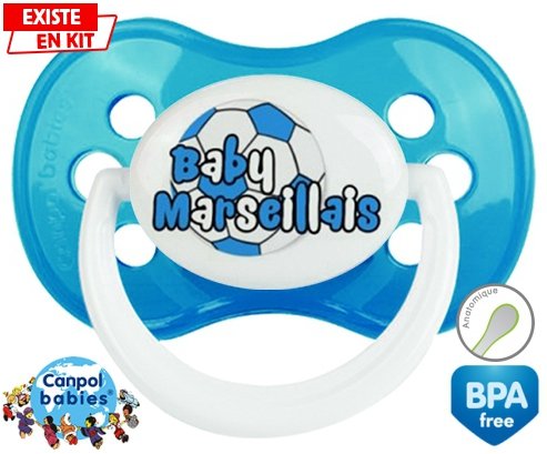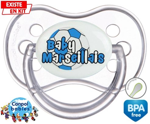 Tétine personnalisée pour bébé Baby marseillais ballon à embout Anatomique en silicone de la marque Canpol Babies avec impression en en Couleurs de la collection Sport / Loisir.La silicone se reconnaît par sa couleur transparente. C'est une matière souple, douce, sans goût ni odeur et offre à bébé une succion plus facile grâce à sa souplesse.
