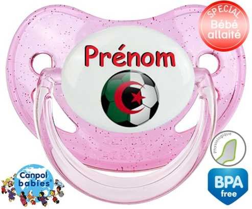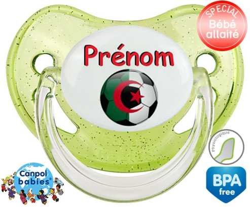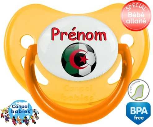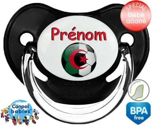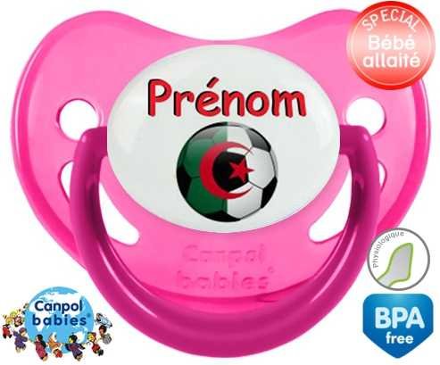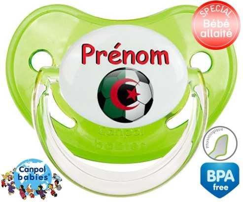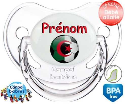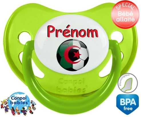 Tetine personnalisee avec le prénom pour bébé Ballon foot Algérie + prénom : Embout Physiologique en silicone de la marque Canpol Babies avec impression en couleur.