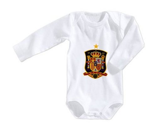 Découvrez ce body personnalisé pour bébé, alliant douceur et praticité. Ce modèle à l'effigie de l’équipe nationale d'Espagne, aux couleurs vives, est idéal pour les petits fans de football. Confectionné en 100 % coton doux et respirant, il propose une encolure américaine et des boutons pression pour un habillage facile. Disponible en manches courtes ou longues, il s’adapte parfaitement aux bébés de 0 à 36 mois.
