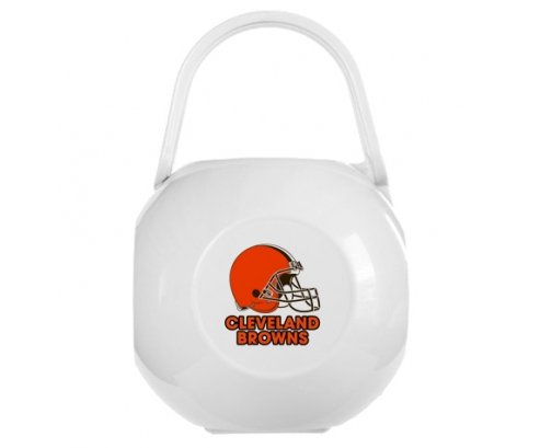 Boite à tetine personnalisée : Cleveland Browns , avec une impression en couleur et qui compléte toute la gamme ( tetine, attache-tetine, bavoir, chausson, body et bonnet).