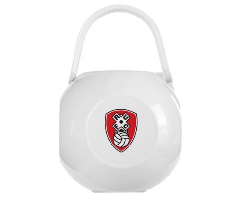 Boîte à tétine avec design : Rotherham United Football Club , impression de qualité et en couleur. Pratique : elle transporte la sucette en tout lieu. Grâce à sa poignée souple, elle est facile à accrocher à la poussette, sac à langer ... Cette boîte de rangement flexible, est la solution hygiénique pour protéger les sucettes de son enfant quand il ne les utilise pas. Peut contenir jusqu'à deux tétines.