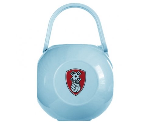 Boîte à tétine personnalisée : Rotherham United Football Club , avec une impression en couleur et qui compléte toute la gamme ( tétine, attache-tétine, bavoir, chausson, body et bonnet).