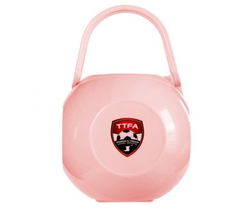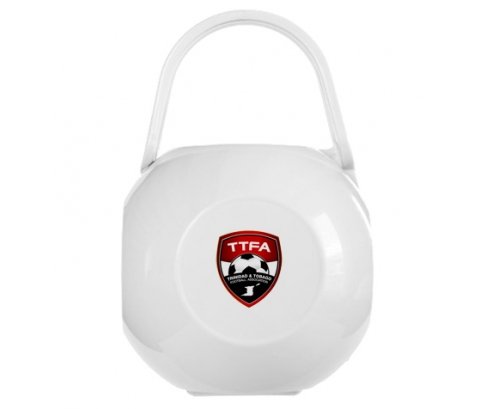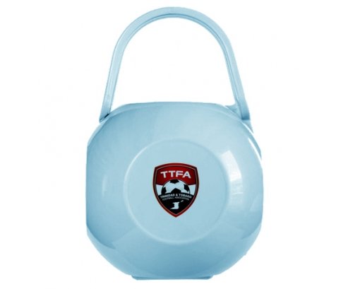Boîte à tétine personnalisée : Trinidad and Tobago national football team , avec une impression en couleur et qui compléte toute la gamme ( tétine, attache-tétine, bavoir, chausson, body et bonnet).