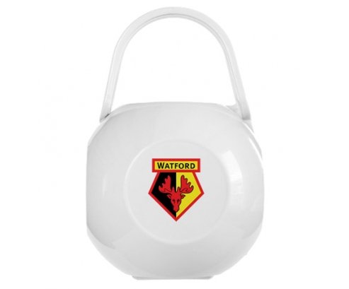 Boîte à sucette avec design : Watford Football Club , impression de qualité et en couleur. Pratique : elle transporte la sucette en tout lieu. Grâce à sa poignée souple, elle est facile à accrocher à la poussette, sac à langer ... Cette boîte de rangement flexible, est la solution hygiénique pour protéger les sucettes de son enfant quand il ne les utilise pas. Peut contenir jusqu'à deux sucettes.
