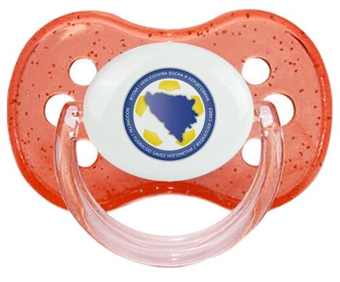 Tétine personnalisée Sans Prénom pour bébé Bosnia Herzegovina national football team en silicone de la marque Canpol Babies avec impression en couleur.