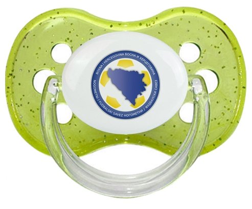 Tétine personnalisée pour bébé Bosnia Herzegovina national football team à embout Cerise en silicone de la marque Canpol Babies avec impression en en Couleurs de la Collection Pays / Équipes .La silicone se reconnaît par sa couleur transparente. C'est une matière souple, douce, sans goût ni odeur et offre à bébé une succion plus facile grâce à sa souplesse.