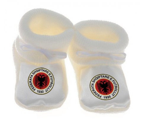 Su7.fr vous propose le chausson bébé personnalisé pour nouveau né avec le design : Albania national football team . Ce chausson avec une impression en couleur compléte toute la gamme ( sucette, attache-sucette, bavoir, chausson, body , Boîte à sucette, et bonnet).