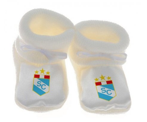 Su7.fr vous propose le chausson bébé personnalisé pour nouveau né avec le design : Club Sporting Cristal Péru . Ce chausson avec une impression en couleur compléte toute la gamme ( sucette, attache-sucette, bavoir, chausson, body , Boîte à sucette, et bonnet).
