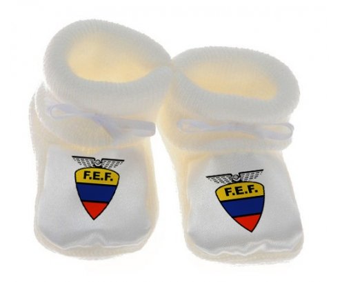 Su7.fr vous propose le chausson bébé personnalisé pour nouveau né avec le design : Ecuador national football team . Ce chausson avec une impression en couleur compléte toute la gamme ( sucette, attache-sucette, bavoir, chausson, body , Boîte à sucette, et bonnet).