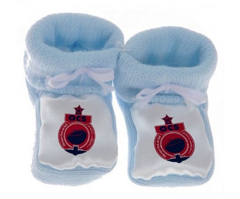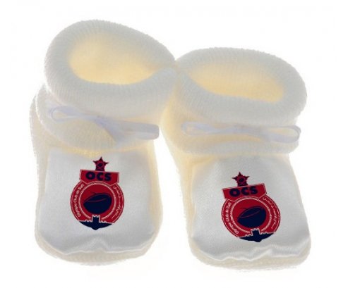 Su7.fr vous propose le chausson bébé personnalisé pour nouveau né avec le design : Olympique Club de Safi . Ce chausson avec une impression en couleur compléte toute la gamme ( sucette, attache-sucette, bavoir, chausson, body , Boîte à sucette, et bonnet).