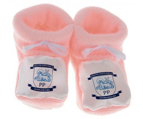 Su7.fr vous propose le chausson bébé personnalisé pour nouveau né avec le design : Preston North End Football Club . Ce chausson avec une impression en couleur compléte toute la gamme ( sucette, attache-sucette, bavoir, chausson, body , Boîte à sucette, et bonnet).