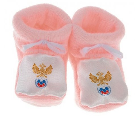 Su7.fr vous propose le chausson bébé personnalisé pour nouveau né avec le design : Russia national football team . Ce chausson avec une impression en couleur compléte toute la gamme ( sucette, attache-sucette, bavoir, chausson, body , Boîte à sucette, et bonnet).