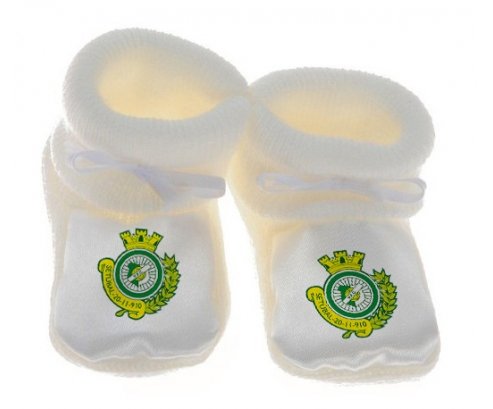 Su7.fr vous propose le chausson bébé personnalisé pour nouveau né avec le design : Vitória Futebol Clube (Setúbal) . Ce chausson avec une impression en couleur compléte toute la gamme ( sucette, attache-sucette, bavoir, chausson, body , Boîte à sucette, et bonnet).