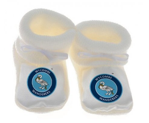 Su7.fr vous propose le chausson bébé personnalisé pour nouveau né avec le design : Wycombe Wanderers Football Club . Ce chausson avec une impression en couleur compléte toute la gamme ( sucette, attache-sucette, bavoir, chausson, body , Boîte à sucette, et bonnet).