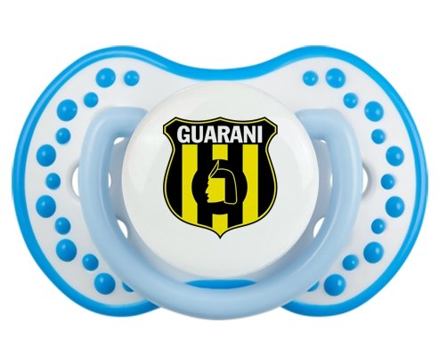 Sucette personnalisée pour bébé Club Guaraní à embout LOVI Dynamic en silicone de la marque Lovi Dynamic avec impression en en Couleurs de la Collection Pays / Équipes .La silicone se reconnaît par sa couleur transparente. C'est une matière souple, douce, sans goût ni odeur et offre à bébé une succion plus facile grâce à sa souplesse.