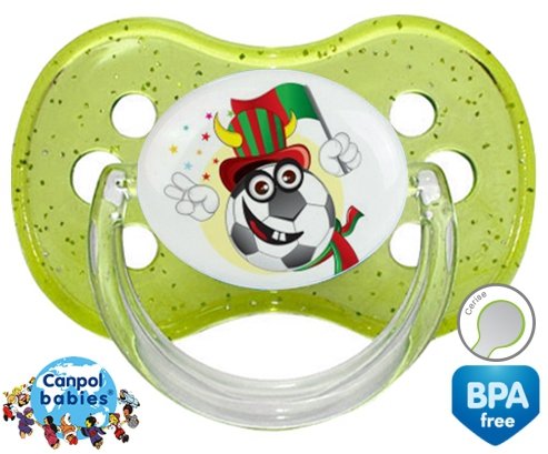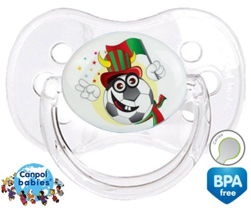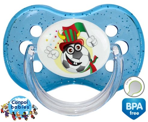 Sucette personnalisée pour bébé Euro 2016 Portugal à embout Cerise en silicone de la marque Canpol Babies avec impression en en Couleurs de la collection Sport / Loisir.La silicone se reconnaît par sa couleur transparente. C'est une matière souple, douce, sans goût ni odeur et offre à bébé une succion plus facile grâce à sa souplesse.