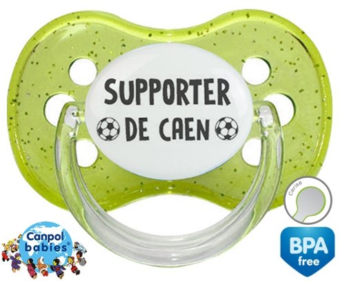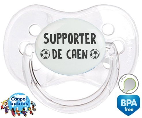 Sucette personnalisée pour bébé Foot supporter caen à embout Cerise en silicone de la marque Canpol Babies avec impression en en Gris de la collection Sport / Loisir.La silicone se reconnaît par sa couleur transparente. C'est une matière souple, douce, sans goût ni odeur et offre à bébé une succion plus facile grâce à sa souplesse.