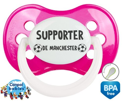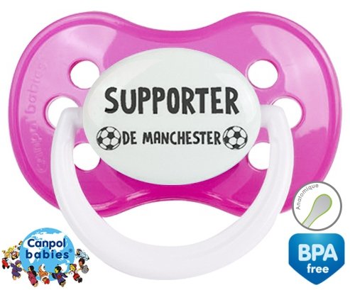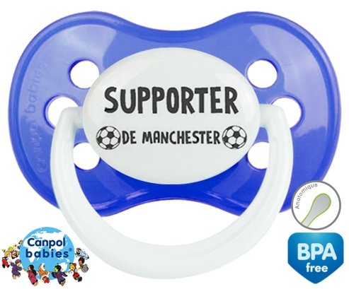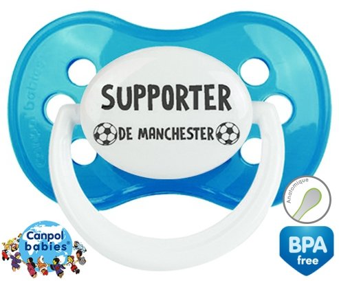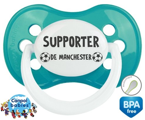 Tetine personnalisee pour bébé Foot supporter manchester à embout Anatomique en silicone de la marque Canpol Babies avec impression en en Gris de la collection Sport / Loisir.La silicone se reconnaît par sa couleur transparente. C'est une matière souple, douce, sans goût ni odeur et offre à bébé une succion plus facile grâce à sa souplesse.