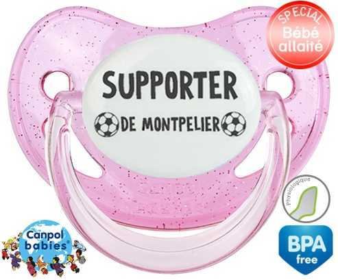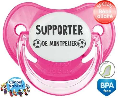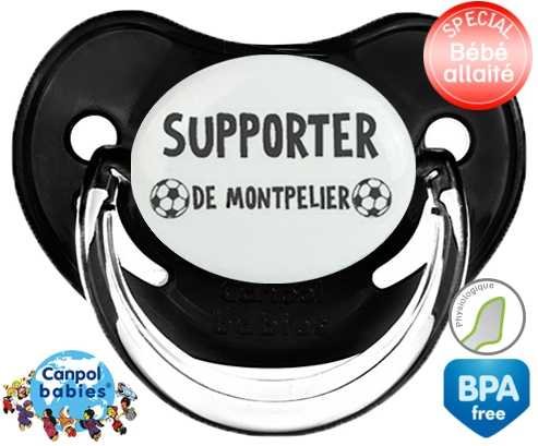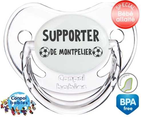 Tetine personnalisee pour bébé Foot supporter montpelier à embout Physiologique en silicone de la marque Canpol Babies avec impression en en Gris de la collection Sport / Loisir.La silicone se reconnaît par sa couleur transparente. C'est une matière souple, douce, sans goût ni odeur et offre à bébé une succion plus facile grâce à sa souplesse.