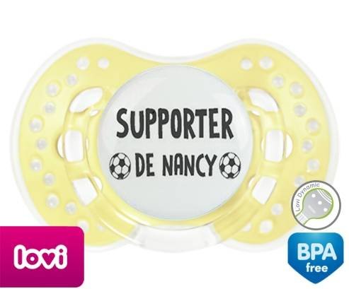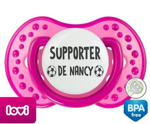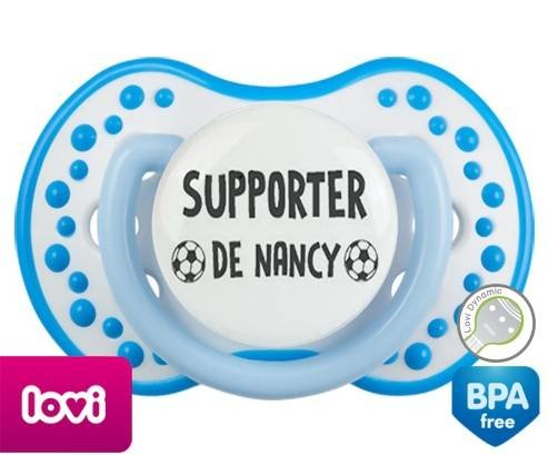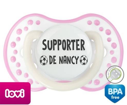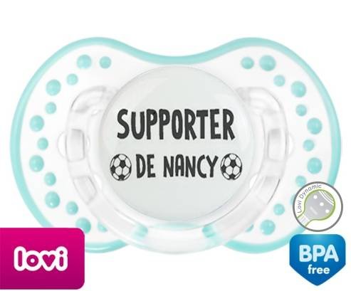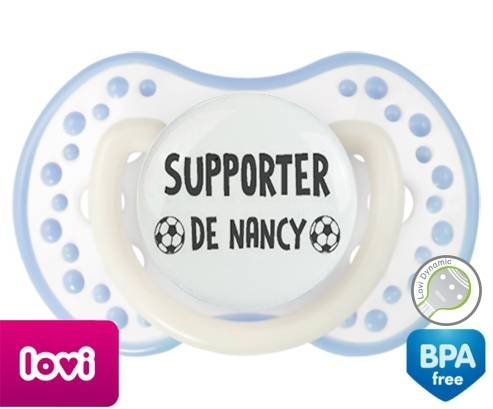 Sucette personnalisée pour bébé Foot supporter nancy à embout LOVI Dynamic en silicone de la marque Lovi Dynamic avec impression en en Gris de la collection Sport / Loisir.La silicone se reconnaît par sa couleur transparente. C'est une matière souple, douce, sans goût ni odeur et offre à bébé une succion plus facile grâce à sa souplesse.