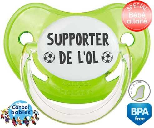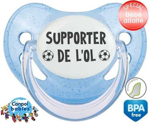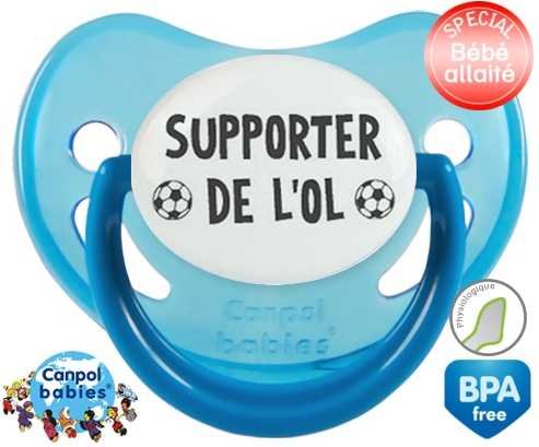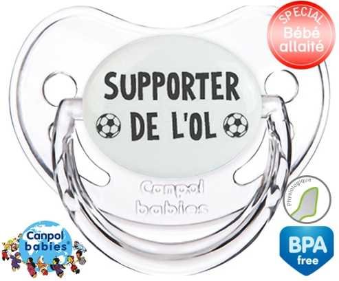 Sucette personnalisée pour bébé Foot supporter ol lyon à embout Physiologique en silicone de la marque Canpol Babies avec impression en en Gris de la collection Sport / Loisir.La silicone se reconnaît par sa couleur transparente. C'est une matière souple, douce, sans goût ni odeur et offre à bébé une succion plus facile grâce à sa souplesse.