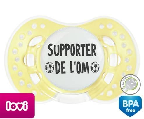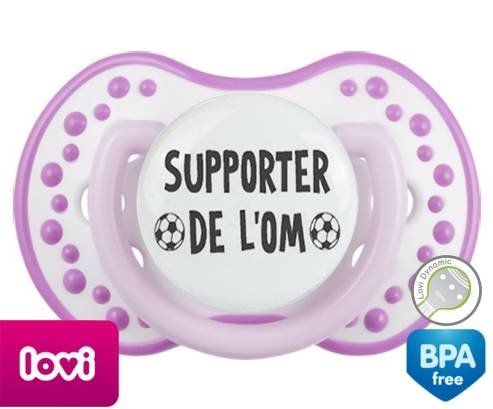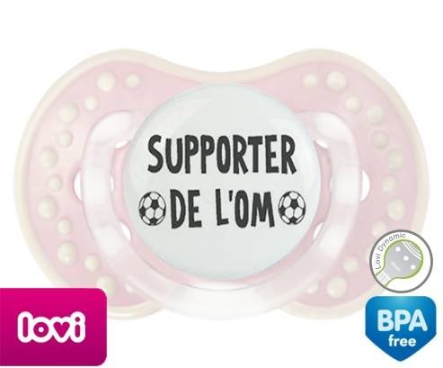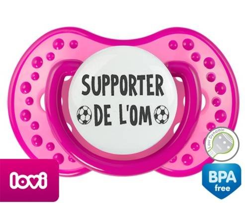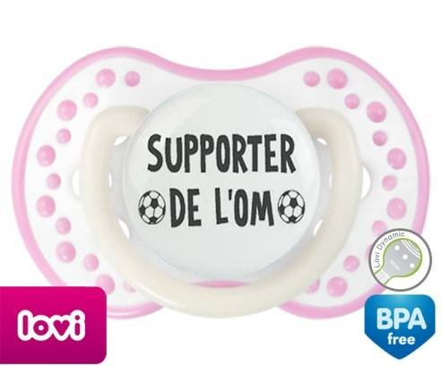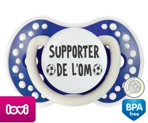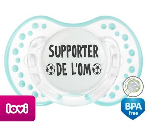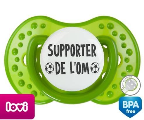 Sucette personnalisée pour bébé Foot supporter om à embout LOVI Dynamic en silicone de la marque Lovi Dynamic avec impression en en Gris de la collection Sport / Loisir.La silicone se reconnaît par sa couleur transparente. C'est une matière souple, douce, sans goût ni odeur et offre à bébé une succion plus facile grâce à sa souplesse.