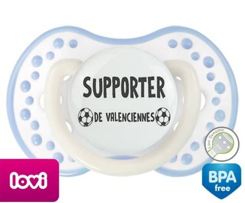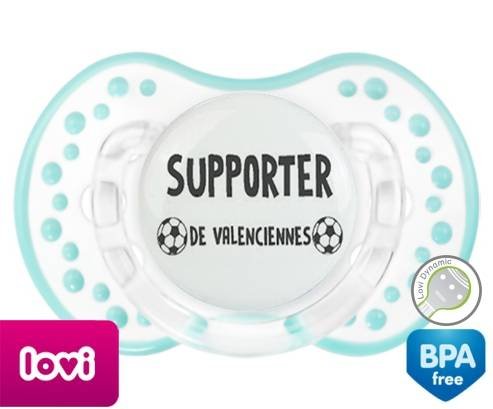 Sucette personnalisée pour bébé Foot supporter valenciennes à embout LOVI Dynamic en silicone de la marque Lovi Dynamic avec impression en en Gris de la collection Sport / Loisir.La silicone se reconnaît par sa couleur transparente. C'est une matière souple, douce, sans goût ni odeur et offre à bébé une succion plus facile grâce à sa souplesse.