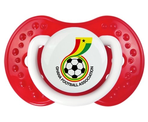 Tétine personnalisée pour bébé Ghana national football team à embout LOVI Dynamic en silicone de la marque Lovi Dynamic avec impression en en Couleurs de la Collection Pays / Équipes .La silicone se reconnaît par sa couleur transparente. C'est une matière souple, douce, sans goût ni odeur et offre à bébé une succion plus facile grâce à sa souplesse.
