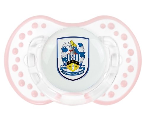 Tétine personnalisée pour bébé Huddersfield Town Association Football Club à embout LOVI Dynamic en silicone de la marque Lovi Dynamic avec impression en en Couleurs de la Collection Pays / Équipes .La silicone se reconnaît par sa couleur transparente. C'est une matière souple, douce, sans goût ni odeur et offre à bébé une succion plus facile grâce à sa souplesse.