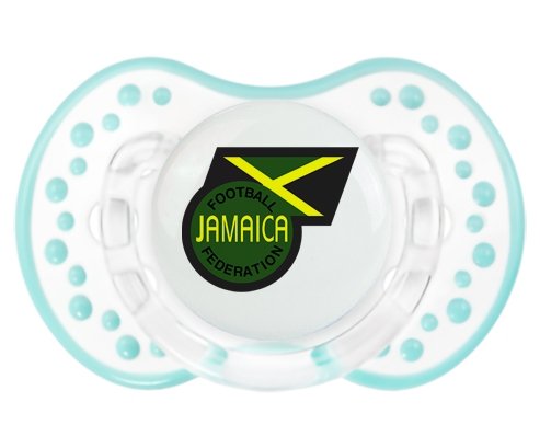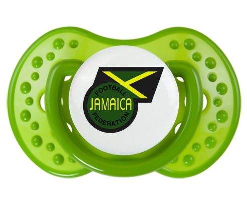 Sucette personnalisée Sans Prénom pour bébé Jamaica national football team en silicone de la marque Lovi Dynamic avec impression en couleur.