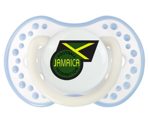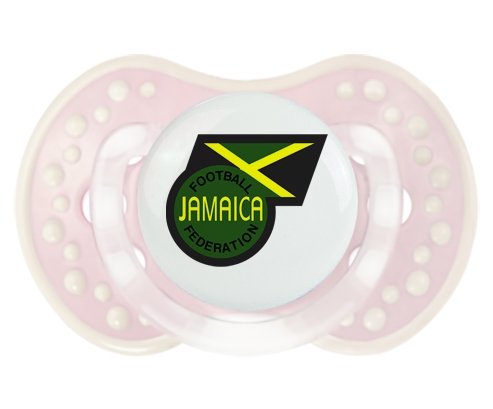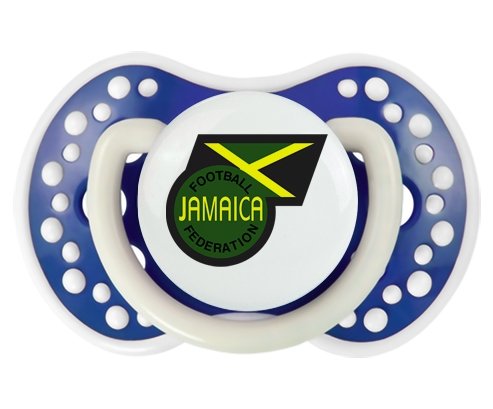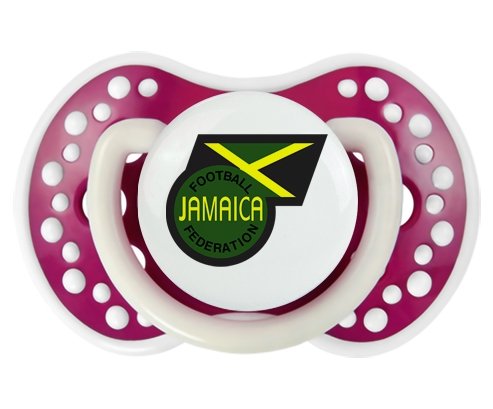 Sucette personnalisée pour bébé Jamaica national football team à embout LOVI Dynamic en silicone de la marque Lovi Dynamic avec impression en en Couleurs de la Collection Pays / Équipes .La silicone se reconnaît par sa couleur transparente. C'est une matière souple, douce, sans goût ni odeur et offre à bébé une succion plus facile grâce à sa souplesse.