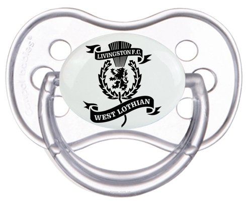 Sucette personnalisée pour bébé Livingston Football Club à embout Anatomique en silicone de la marque Canpol Babies avec impression en en Couleurs de la Collection Pays / Équipes .La silicone se reconnaît par sa couleur transparente. C'est une matière souple, douce, sans goût ni odeur et offre à bébé une succion plus facile grâce à sa souplesse.