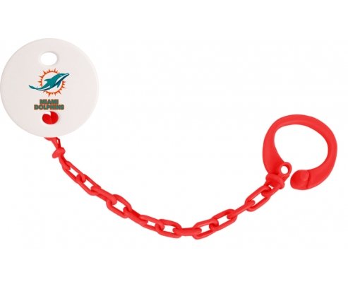 Attache-tétine personnalisé Miami Dolphins avec personnalisation design en couleur. Disponible en plusieurs coloris et plastique facile à laver. Pratique : permet une fixation facile de la sucette de bébé à son doudou et à ses vêtements en un seul clip. Hygiénique : empêche la sucette de tomber par terre et permet ainsi à bébé d'avoir une sucette propre toute la journée Visible : facile à repérer grâce aux motifs colorés.