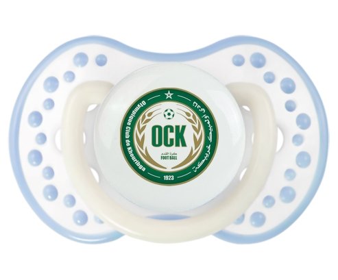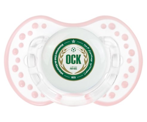 Sucette personnalisée pour bébé Olympique Club de Khouribga à embout LOVI Dynamic en silicone de la marque Lovi Dynamic avec impression en en Couleurs de la Collection Pays / Équipes .La silicone se reconnaît par sa couleur transparente. C'est une matière souple, douce, sans goût ni odeur et offre à bébé une succion plus facile grâce à sa souplesse.