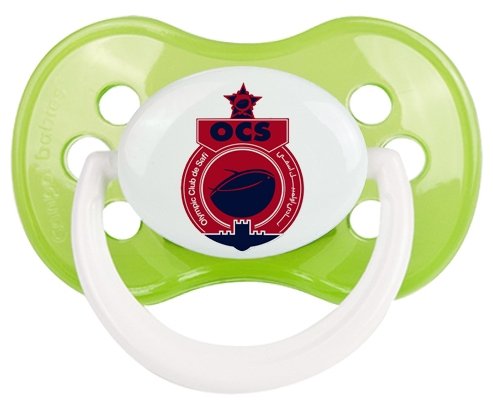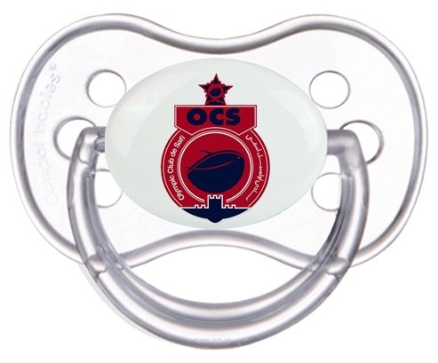 Sucette personnalisée pour bébé Olympique Club de Safi à embout Anatomique en silicone de la marque Canpol Babies avec impression en en Couleurs de la Collection Pays / Équipes .La silicone se reconnaît par sa couleur transparente. C'est une matière souple, douce, sans goût ni odeur et offre à bébé une succion plus facile grâce à sa souplesse.