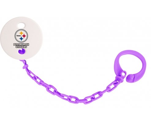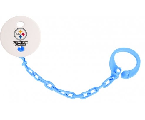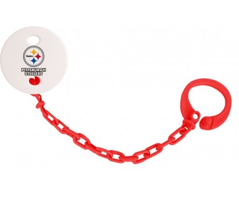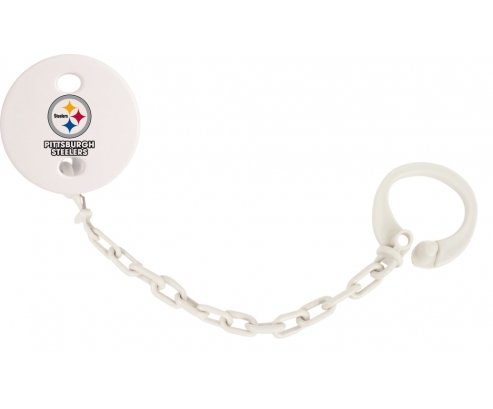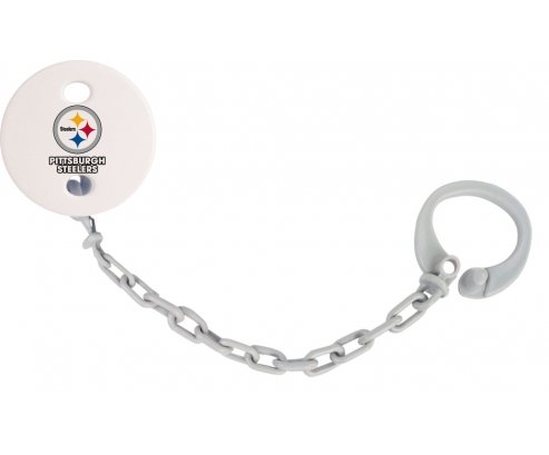 Attache-tétine personnalisé Pittsburgh Steelers avec personnalisation design en couleur. Disponible en plusieurs coloris et plastique facile à laver. Pratique : permet une fixation facile de la sucette de bébé à son doudou et à ses vêtements en un seul clip. Hygiénique : empêche la sucette de tomber par terre et permet ainsi à bébé d'avoir une sucette propre toute la journée Visible : facile à repérer grâce aux motifs colorés.