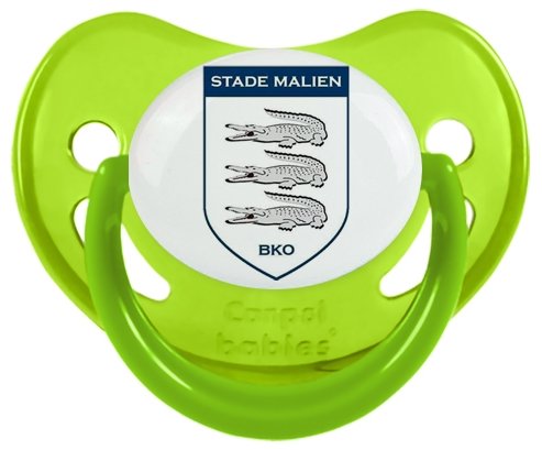Sucette personnalisée pour bébé Stade Malien à embout Physiologique en silicone de la marque Canpol Babies avec impression en en Couleurs de la Collection Pays / Équipes .La silicone se reconnaît par sa couleur transparente. C'est une matière souple, douce, sans goût ni odeur et offre à bébé une succion plus facile grâce à sa souplesse.