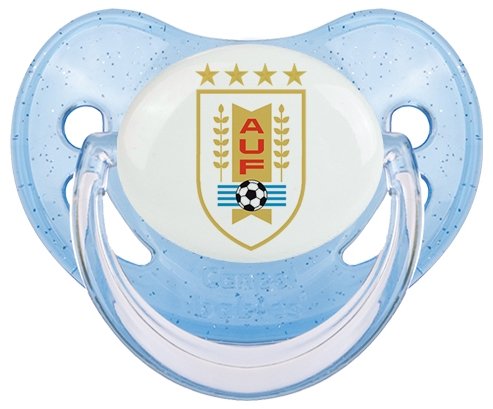 Sucette personnalisée pour bébé Uruguay national football team à embout Physiologique en silicone de la marque Canpol Babies avec impression en en Couleurs de la Collection Pays / Équipes .La silicone se reconnaît par sa couleur transparente. C'est une matière souple, douce, sans goût ni odeur et offre à bébé une succion plus facile grâce à sa souplesse.
