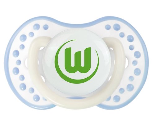 Sucette personnalisée Sans Prénom pour bébé VfL Wolfsburg en silicone de la marque Lovi Dynamic avec impression en couleur.