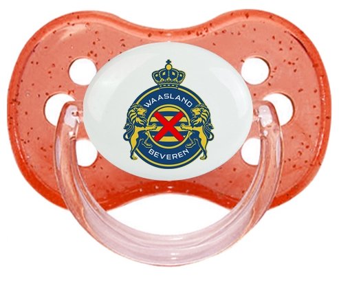 Sucette personnalisée pour bébé Waasland-Beveren à embout Cerise en silicone de la marque Canpol Babies avec impression en en Couleurs de la Collection Pays / Équipes .La silicone se reconnaît par sa couleur transparente. C'est une matière souple, douce, sans goût ni odeur et offre à bébé une succion plus facile grâce à sa souplesse.