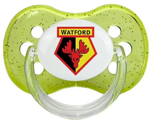Sucette personnalisée pour bébé Watford Football Club à embout Cerise en silicone de la marque Canpol Babies avec impression en en Couleurs de la Collection Pays / Équipes .La silicone se reconnaît par sa couleur transparente. C'est une matière souple, douce, sans goût ni odeur et offre à bébé une succion plus facile grâce à sa souplesse.