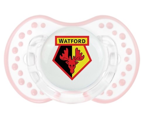 Sucette personnalisée pour bébé Watford Football Club à embout LOVI Dynamic en silicone de la marque Lovi Dynamic avec impression en en Couleurs de la Collection Pays / Équipes .La silicone se reconnaît par sa couleur transparente. C'est une matière souple, douce, sans goût ni odeur et offre à bébé une succion plus facile grâce à sa souplesse.