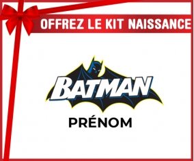 Kit naissance : Batmobile design-1 avec prénomKit naissance complet et personnalisé pour un accueil unique. Composé d’un bonnet, body, bavoir, chaussons, tétine, attache-tétine et boîte à tétine. Visuel coloré inspiré de l’univers Batman, idéal pour les petits garçons. Personnalisation avec le prénom pour une touche d’originalité et de...